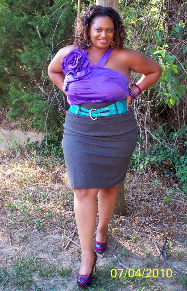 I know I was a little “over” dressed for the 4th of July but I was hosting a party and wanted to be appropiate. Plus I had been waiting to pull these pumps outta the closet for awhile. I saw this shirt a few months ago and said to myself, ” I have to have this to do an event but how will I pull it off?”. I must have done something right because not to brag, but I got compliments all day on this ensemble hook-up. I’ve had this grey pencil skirt for over a year and have only worn it once I think and since grey’s the new black, I figured that’s the way to go. Here’s the breakdown: