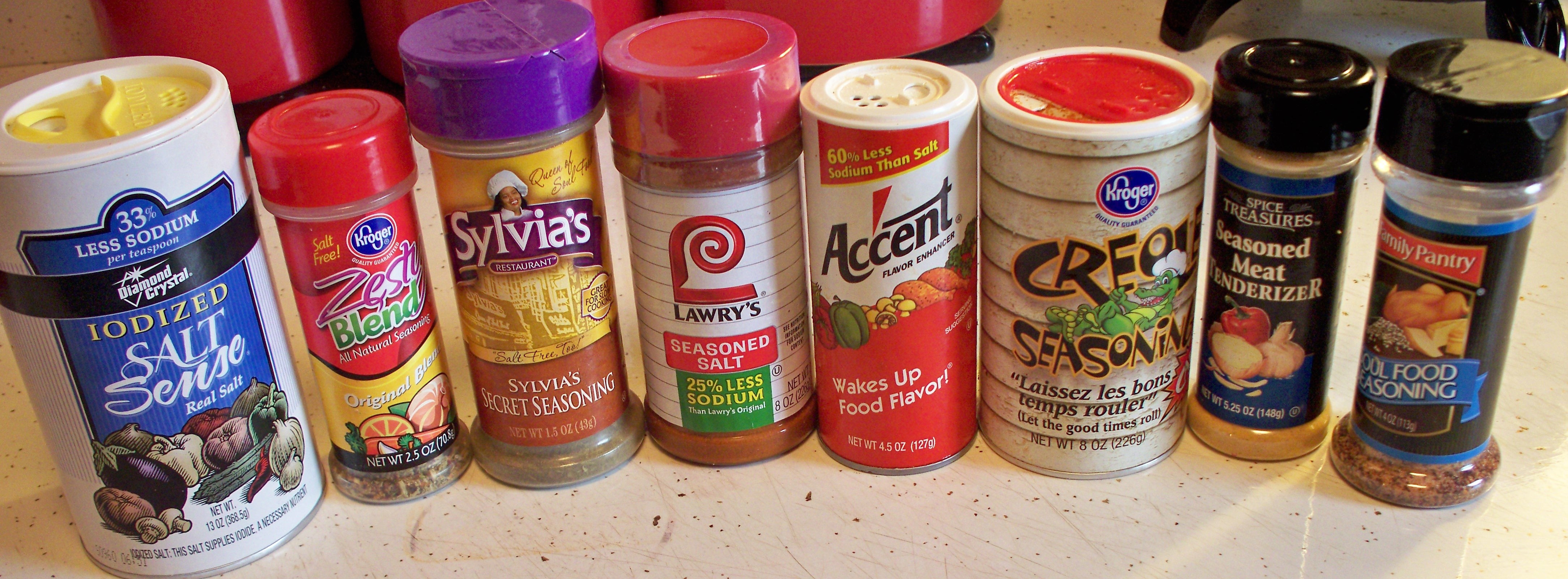 -Low-Sodium Lawry’s, Accent, Mrs. Dash, Meat Tenderizer, Soul Food Seasoning & Sylvia’s Chicken Seasoning