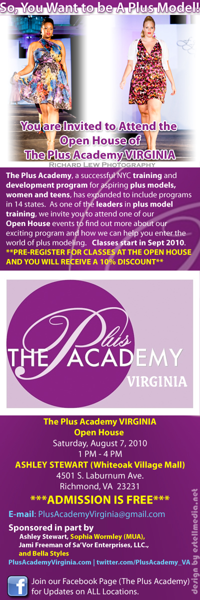 Please plan on joining us THIS Saturday, August 7th from 1pm-4pm at Ashley Stewart at Whiteoak Village Mall in Richmond, Virginia. We will be having the Open House for The Plus Academy VIRGINIA’s fall course session.