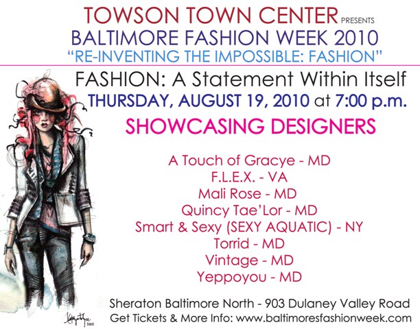 Baltimore Fashion Week, produced by Butterfly Productions, LLC, is Baltimore’s annual high fashion runway event featuring local, national, and international designers and we are pleased to announce that Towson Town Center is the Title Sponsor for this year’s production of Baltimore Fashion Week 2010.