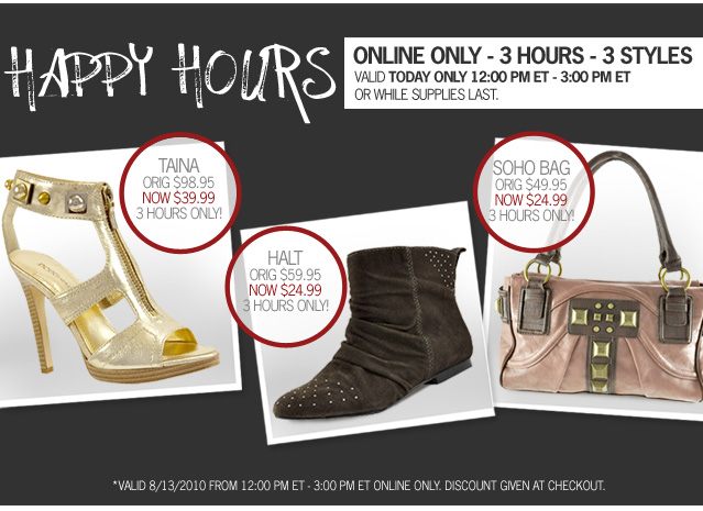 Deal of the Day: “Bakers Shoes has 3 items on sale for 3 hours only!”
