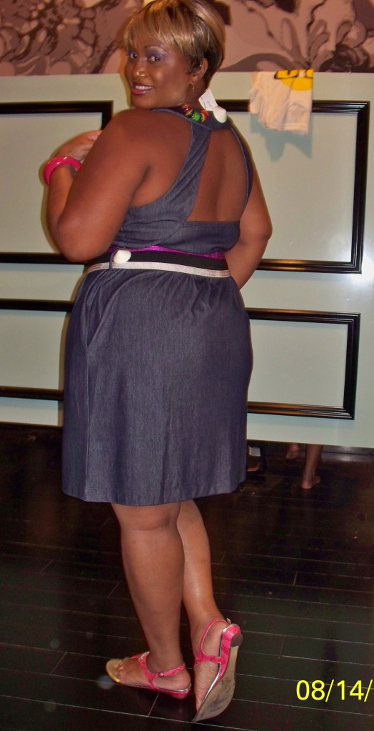 I took some time out today to actually play dress up and try on clothing from the plus-size line of Forever 21’s store called Faith 21. I know I’m usually ranting about how I love everything I blog on but I finally found a label that I can say that there is nothing “faithful” about. I could kinda tell from looking online that the clothes were “cheaply” made and I was right. It seems like every skirt is a mini and doesn’t have enough material in it. This line is definately catered to the “junior” or younger plus size crowd. The prices are very inexpensive so I guess you get what you pay for. I tried on a few pieces and although I will say that their clothes are really cute, everything fits really tight or had ill-fitting material in it. That’s why I always tell clients to try clothes on no matter what size you “think” you may wear. I can usually fit a size 2X/3X at any other store but in Faith 21 they would have to go up to a 5X in order for the clothing to fit me comfortably. I think that their plus size line is made for curvy women who are on the smaller plus-size side like a size 14-16. Now I know alot of you ladies have hangups about “label sizes” but you have to “always” go by fit not numbers. You would really have to wear a foundation with some of these pieces that I tried on. Now granted I did buy a studded vest from them when the store first opened here in Richmond months ago but that doesn’t have any buttons or anything on it so it fit pretty well. Overall I will just wait and see if they improve on the quality of their clothing because as of right now, I don’t have alot of “faith” in Faith 21 clothing 😦
