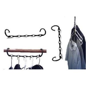 – To save closet space and organize clothes, use the “Magic Hangers” which can hold up to 5 items per hanger