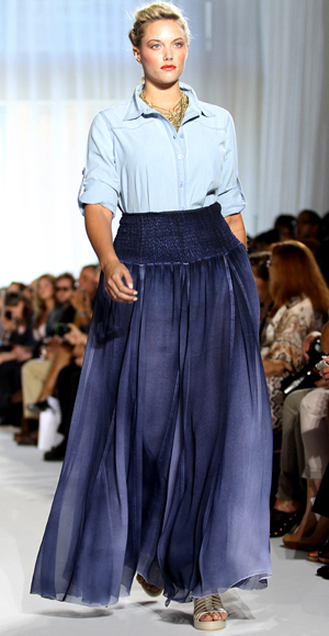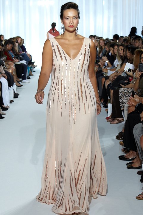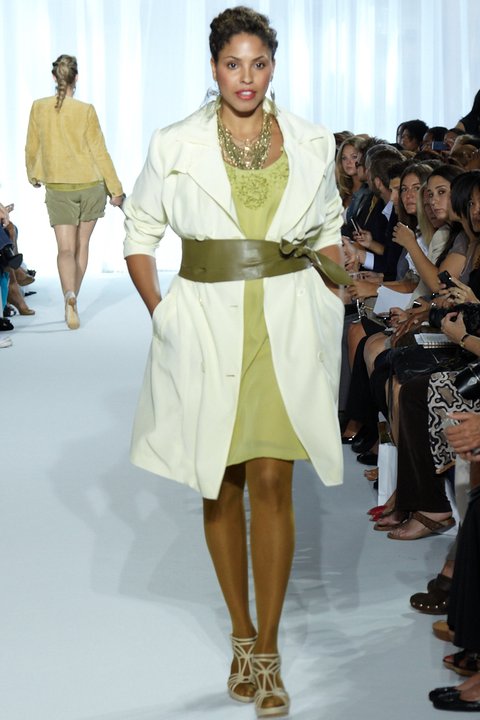 Yesterday marked history in the plus-size world as the first ever “plus-size only” show was showcased during Mercedes Benz Fashion Week. I myself am so disappointed because due to me running late from The Wendy Williams Show and my cab driver taking me to the wrong building, I missed the actual show. But the pics show clothing that is full of bold colors and figure flattering pieces. I did arrive in time to see some of my fellow curvy associates and to do a little networking. I saw Toccara once I arrived and the hair for the show had a Grecian theme to it as I saw that her’s was all pulled up into a loose ponytail. Top curvy models Toccara, Lizzie Miller and Emme were also apart of the show and celebrity curvy ladies such as Gabby Sidibe, Whitney Thompson and Nikki Blonsky were seated front row.