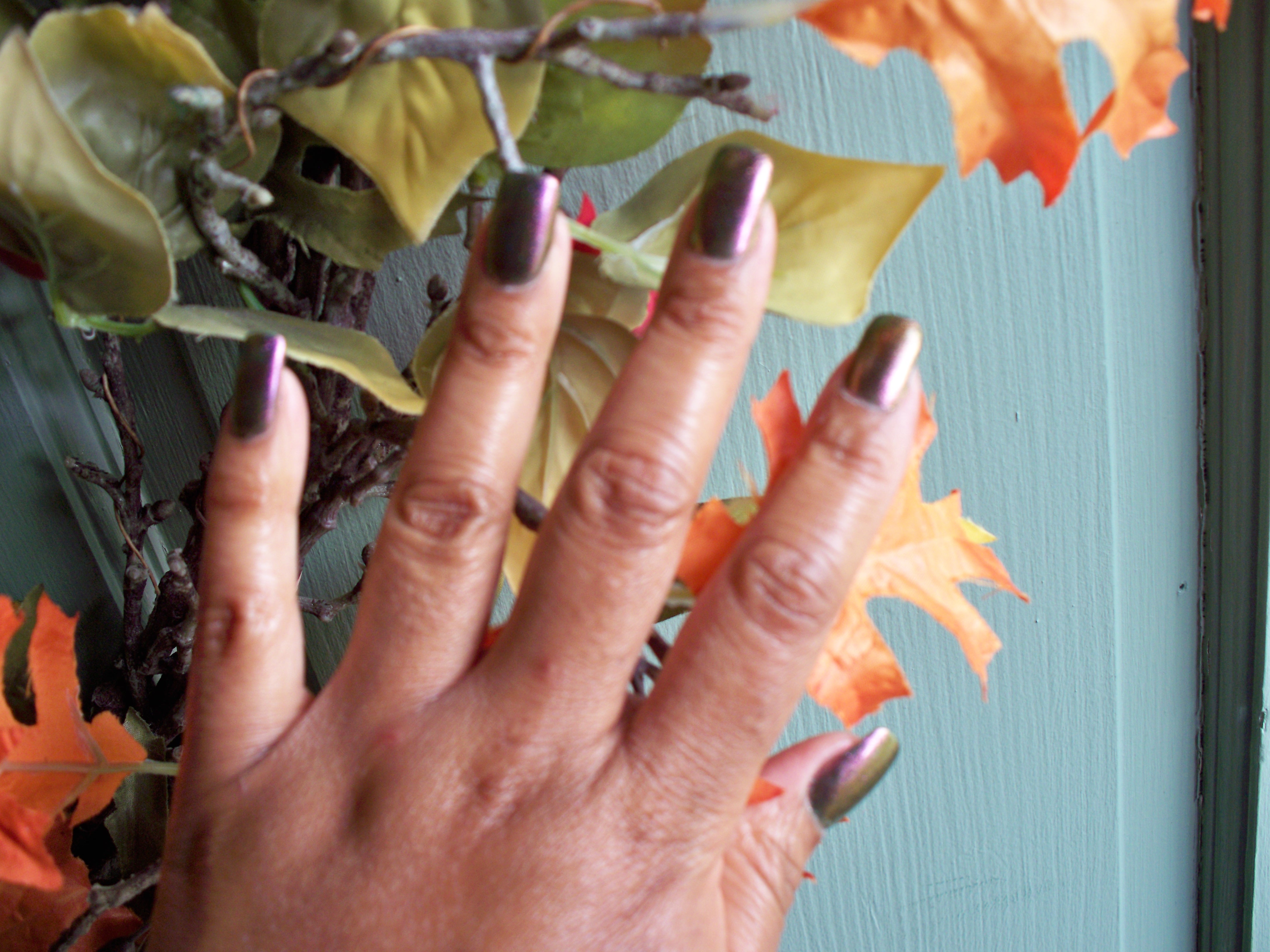 As I got outside in the sun, the polish appeared purple-ish. I absolutely love it. It’s as if I have 3D nails. When I came back in the house they appeared bronze-ish. So overall, I have gone from 3-4 different nail colors in the last hour. I Love it!!!!