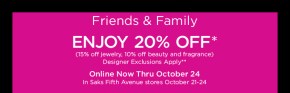 Saks Fifth Avenue “Friends & Family” 20% Off Discount