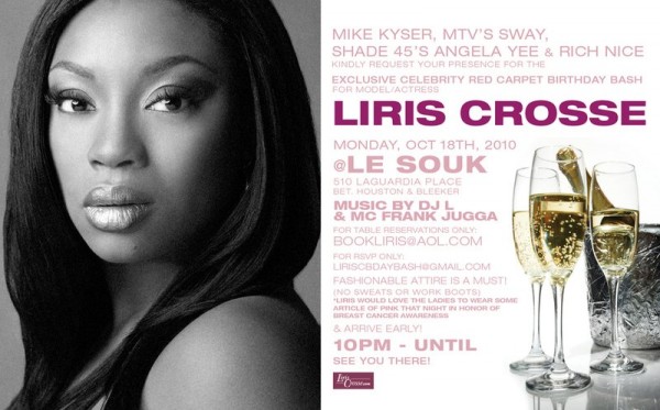 (New York, NY: October 25, 2010) Celebrities and athletes came out in full force to celebrate at the Liris Crosse Birthday Celebration hosted by Atlantic Records’ President Mike Kyser, MTV’s Sway, Angela Yee of Shade 45 and Rich Nice at hotspot Le Souk in New York City.