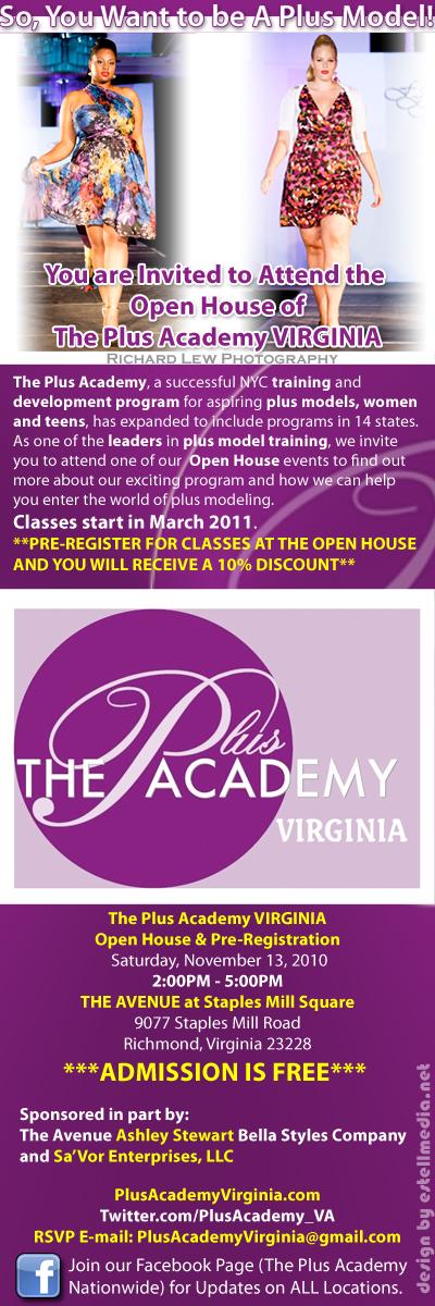Hey curvy ladies, you asked, now here’s the info. The Plus Academy Virginia will have The Plus Academy VIRGINIA 1st Open House for the Spring 2011 Semester on Saturday, November 13th from 3pm-5pm. Please mark your calendars now. Classes will start in March/April 2011!