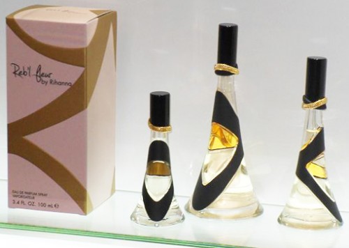 Superstar singer Rihanna has joined the celeb fragrance train and now has a fragrance line. It is called “Reb’l Fleur”. The name, Reb’l Fleur, was tapped from the fashionista’s neck tattoo which reads, “rebelle fleur”. The perfume contains notes of tuberose, violet, hibiscus and coconut water, which sounds very Island inspired. The flacon is clear but adorned with black and gold rings and topped with a gold ring on the stopper. It won’t debut on shelves until February 2011.