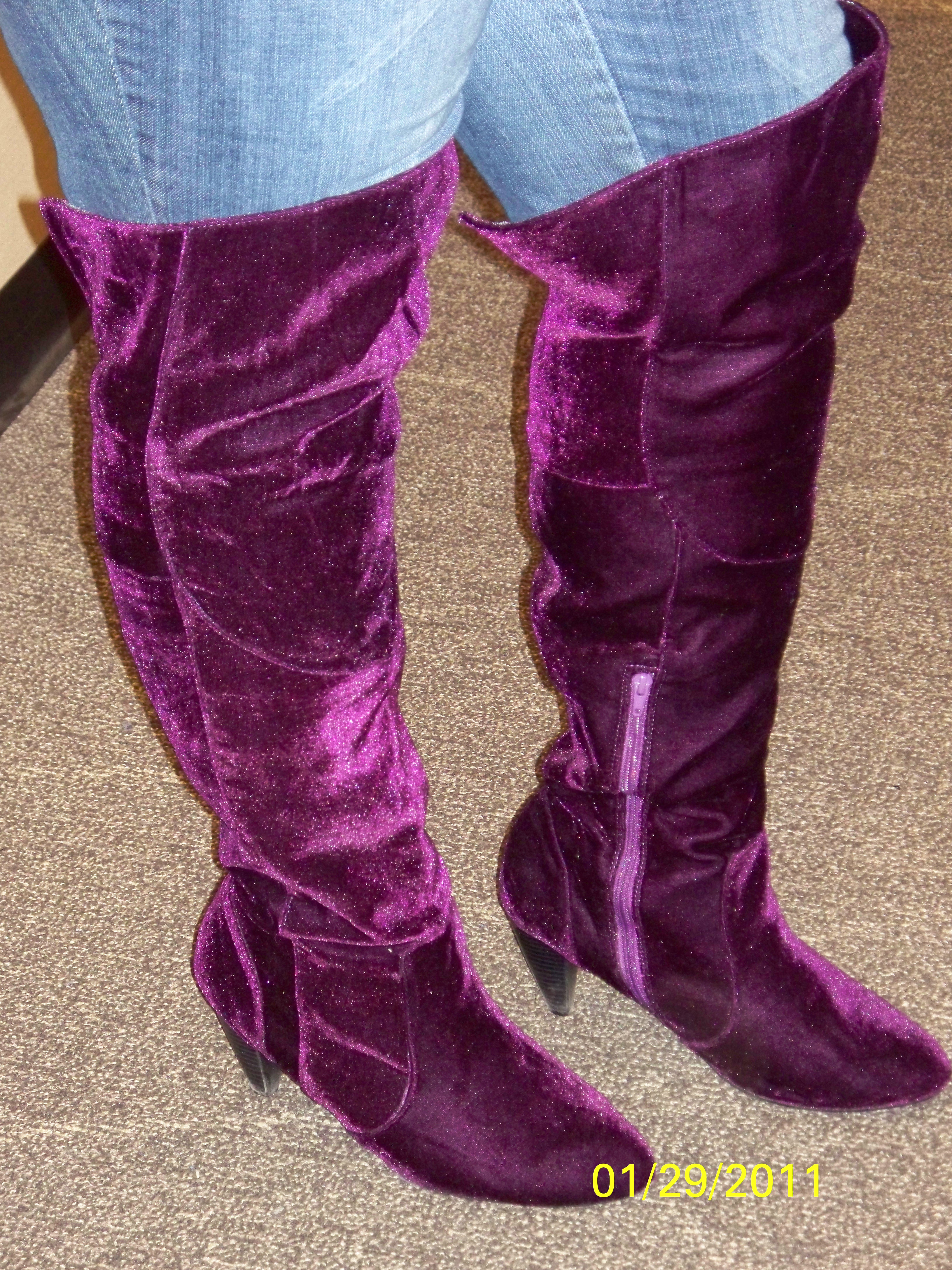 Purple Velvet OTK Boots: Evans £20.00 ($30 USA) www.evans.co.uk