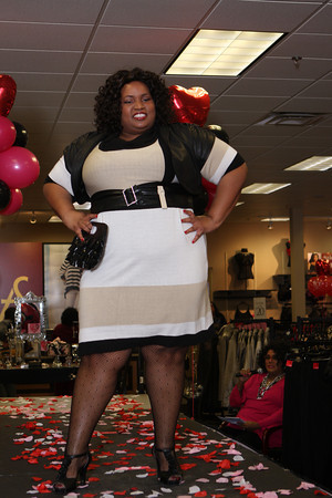 Anyway, I presented on the models some of the newest items from the Pre-Spring 2011 collection that’s in stores now. I literally was at Ashley Stewart everyday for the past two weeks grabbing all new shipments off of the floor for my models. (Sometimes they couldn’t even get it out the box and I was on it, lol). In total I put together 35 outfits for the models. (I will only share a few of the pics here and the rest you can find on my facebook page). I personally have always loved Ashley Stewart’s clothing because of the style and fashion forwardness of it and that’s what I wanted my models to represent. Everything I chose I would actually wear myself. So in a sense, I was living vicariously thru the models last night, lol. I mixed in popular trends like stripes and the nautical look, lingerie for Valentine’s Day to looks for the 9 to 5 business woman. As I always say, I love color and curvy women shouldn’t hide behind black or be afraid to go against the curve. Check out the looks for yourself: