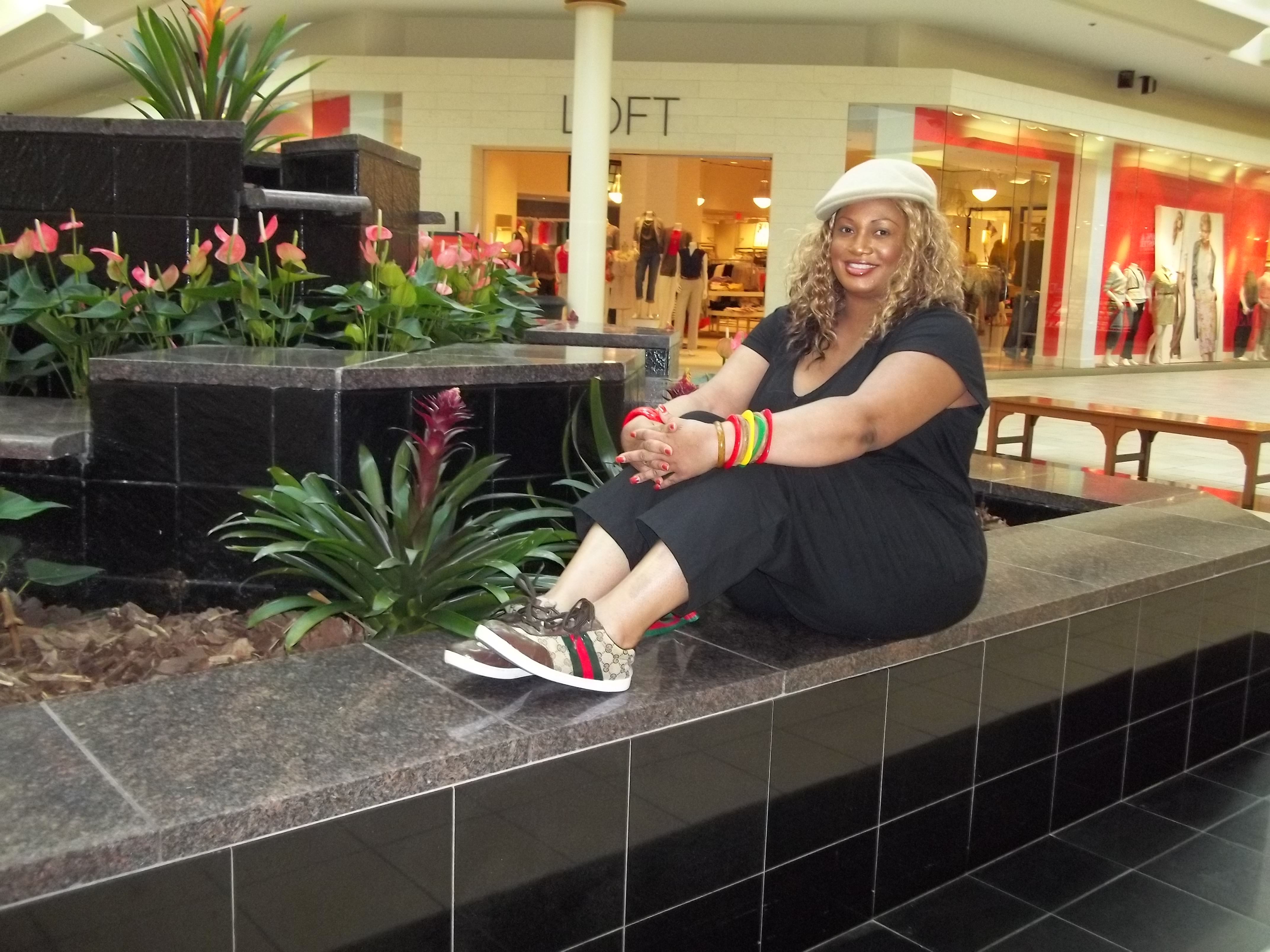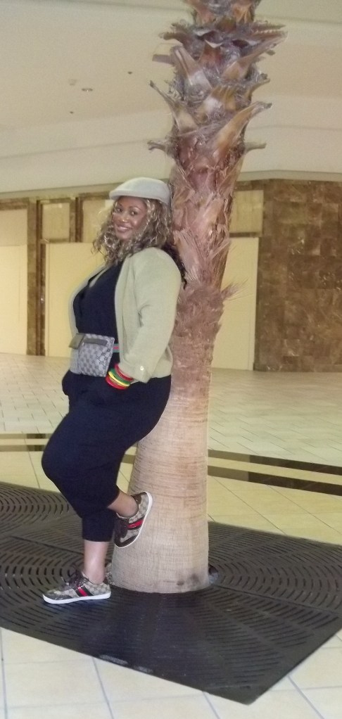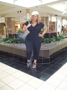 So I know that many have noticed that Wal-Mart is my new best friend for clothing and I can’t lie, I’m hooked. Ever since designers like Norma Kamali and Miss Tina have added collections there it’s a win-win situation. The clothes come in plus-sizes and are very inexpensive. It seems that I have been making Wal-Mart orders here lately back to back. But I am an avid fan of the Norma Kamali line. Take for instance the outfit I had on today. I had been keeping an eye on this one-piece jumpsuit by Norma Kamali for a while. But it was not until I saw it on the beautiful Chastity Garner of Garner Style that I was sold. I needed to see how it actually looked on a woman with curves and she fit it perfectly in her pics, (Frugalista Find: Norma Kamali Jumpsuit). This jumpsuit is so comfortable that I may actually order another one just to have as a backup. It will be perfect for travel, running errands or just to chill in. It comes in olive green or black. Great thing is you can dress it up, like Chastity did, or down, like I did. I was just out window shopping today so I wore mine for that with sneakers.