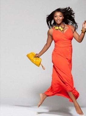 (Below) Toccarra in May’s Essence Magazine in the Miss Tina Coral Maxi Dress $18