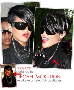 Tonight for the “Full Figured and Fabulous™” Modeling Competition at Full Figured Fashion Week™, I went for the “Rocker Chic” look. I admit my inspiration was completely from Rihanna, once again. I saw her with these “earlace” earrings on last year and I finally tracked down a reasonable pair for myself. An earlace is a pair of earrings that is made like a necklace. They connect from ear to ear. I hadn’t shopped on Ebay in years until I ran across these last month on the site and I ordered them (Earlace, $8).