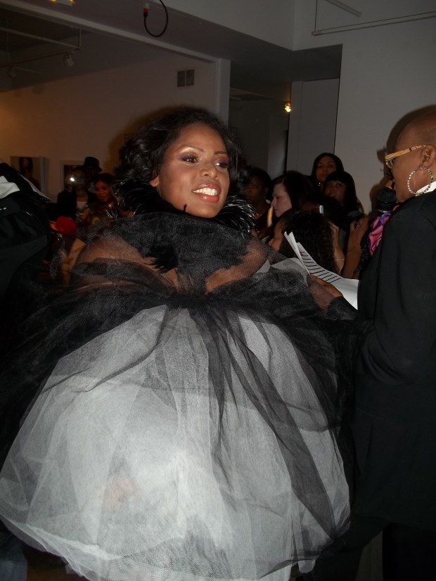 While at FFFWeek last week in NYC, I attended the “Full Figured and Fabulous” modeling competition that Friday night. Twenty curvy aspiring models competed in three rounds of categories for the crown. The categories were 1) Creativity with the official “FFF” T-Shirt, 2) A Funky Outfit and 3) A red evening gown. The contestants really came out of the box for this competition. There were dresses made with actual bubbles on them, a lil’ old school flavor and a whole lotta creativity all the way around. But in the end Niemah Haskins was the lucky winner who took home the new Ms. “Full Figured and Fabulous” crown.