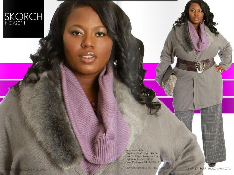 I wanted to style Tionna in versatile looks so I went for both “Urban Fashionista” and also “Holiday Glam”. Her urban looks, courtesy of Ashley Stewart and featured below, will be in the November issue of Skorch Magazine. The Holiday looks, courtesy of Lane Bryant, which Tionna chose as her bookcover, will be featured in the December issue of Skorch.