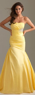 (left) Paula Patton in Monique Lhuillier, (right) Yellow Ruched Taffeta Gown $330 Sizes 0-18