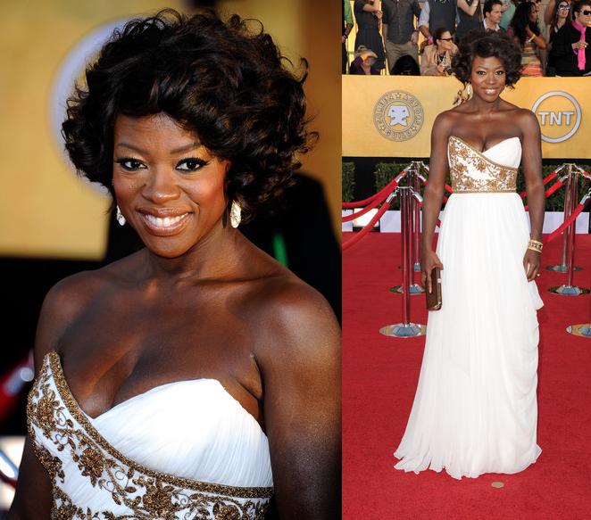 Did you see actress Viola Davis at the SAG Awards this past Sunday? If not you missed her not only accept the award for best actress from the movie, “The Help” but you missed her beautiful dress from designer Marchesa. If you liked her look but don’t wanna shell out thousands of dollars for her dress, then check out this more inexpensive version:
