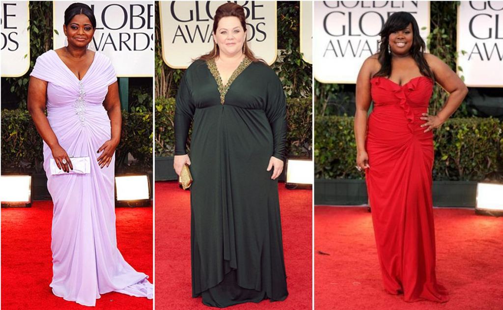 Now since I am a fashion stylist I must speak on the styling point of view. Although Adele looked great in all of her outfit changes last night, I think her stylist played it too safe with the basic ‘black’ looks. Earlier in the night I inadvertently tweeted that “Adele was wearing all black AGAIN, smh”, but I was getting her confused with Melissa McCarthy. But that just proves the same point, why are these beautiful women hiding behind black so much? Golden Globe and SAG winner Octavia Spencer has demonstrated that women with curves ‘can’ rock colors and look marvelous while doing so. Her designer of choice right now is Tadashi Shoji and he’s been making fabulous color-flattering pieces for her. So go ahead ladies, rock your curves!
