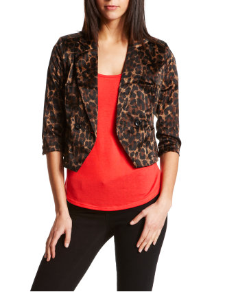 Sateen Cheetah Crop Blazer from Charlotte Russe, $35, Sizes S-L