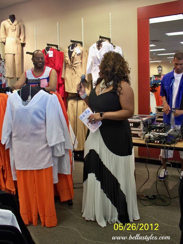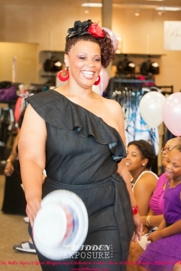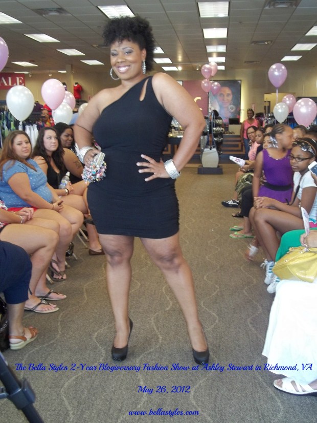 On Saturday, May 26, 2012, I held my two-year blogiversary fashion show at plus-size retailer Ashley Stewart in Richmond, Virginia. Oh what a celebration it was too if I must say so. After weeks of doing fittings and countless hours of styling models, all of my hard work paid off. The theme of the show was called “Bella’s Blogger Fever for Summer” and I presented a fashion show with three scenes that included ‘Memorial Day Wear’, ‘Bella’s Night Out Wear’ and the last scene was called the ‘Color Blast Collection’. Ashley Stewart Store manager, Danielle Davis, brought this idea to my attention last month and after we brainstormed on it, it was decided to celebrate my blogiversary at the same time as me styling their fashion show. It was a match made in heaven. I got to express my creative styling side through nine models and two hostesses. I put together about 25 outfits in total that included bold, bright-colors, curve hugging dresses and items that are in with the current trends. I purposely kept black out of my show, except for one bodycon dress, just to emphasize that plus-size ladies CAN wear vibrant hues and that they don’t have to hide behind basic black all the time. I must thank my models who came from as far as Virginia Beach to Maryland to be apart of this show. Many thanks to the make-up artist Manaya Latrice and Obadiah Augustin. Not only was it a fashion show but a party all in one. DJ Cash Money kept the crowd hype with a mixture of oldies but goodies, uptempo gospel and a little hip-hop all in one. He timed it just right so that when I was introduced at the end he was playing “Go Get It” by Mary Mary. (That is my theme song at the moment and it inspires me so much). My models even gave a line-dance after that to “Wobble-Wobble” which was the perfect finale. (Video to come soon). But the show wouldn’t have been complete without my wonderful commentator, Derek Lett, who is also coincidentally an Ashley Stewart employee. He literally came through for me at the 11th hour when my original commentator became ill the morning of my show. Everything happens for a reason though because Derek personally knew the customers in the crowd, he was passionate about his job and best of all, he sold the clothes right off of the models backs. I mean literally the lines were long and customers left with multiple bags that were full. I had people calling me the next morning commending my commentator, the DJ and of course my styling of the show. I am literally on cloud nine right now. But enough talking, just take a look at the pics to see for yourself……………