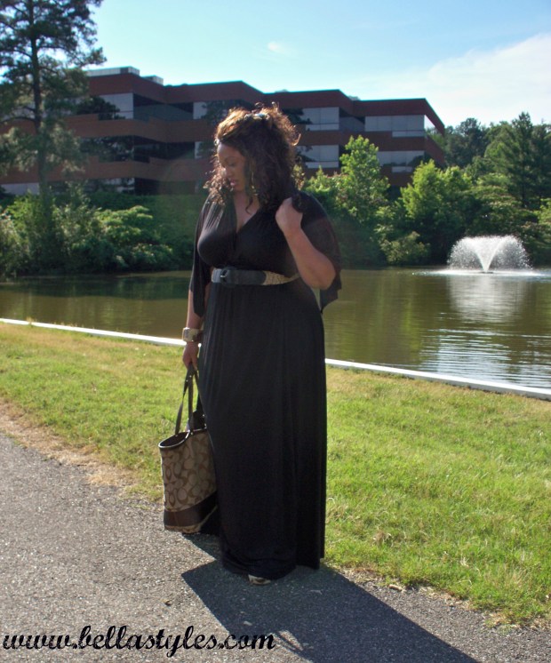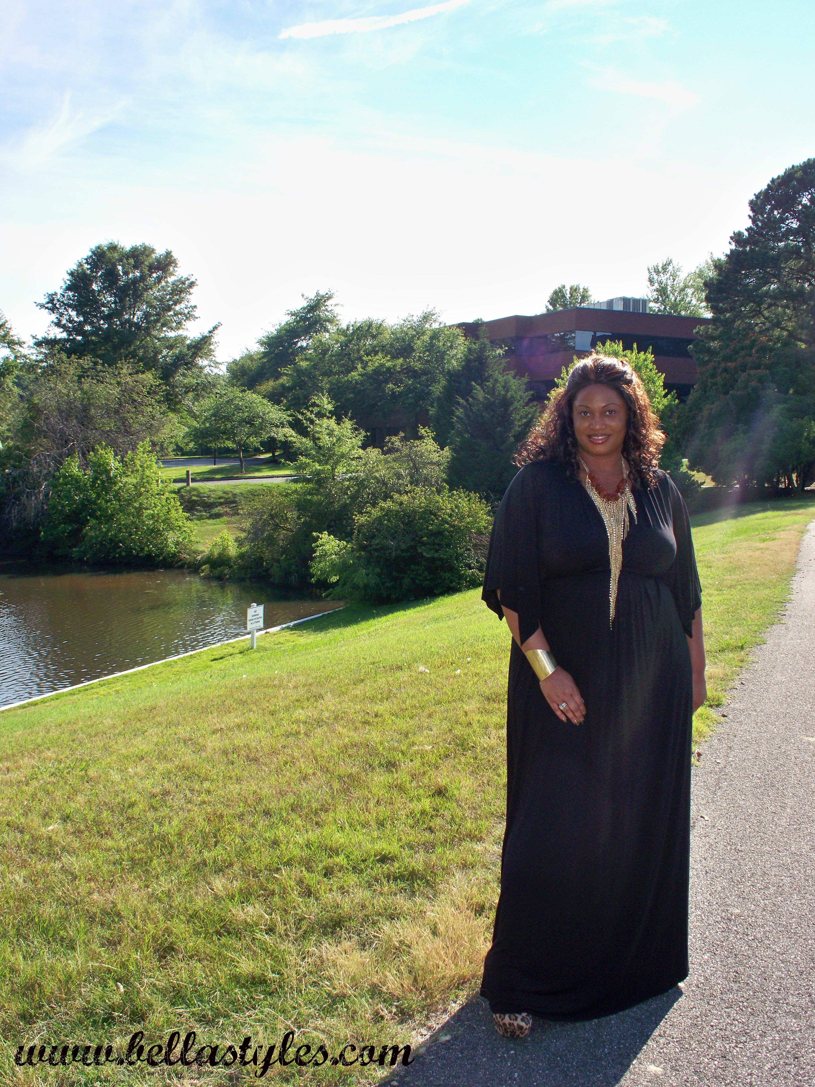 Today was one of those laid-back, lazy Saturdays and I just felt like being carefree. After catching up on my sleep all-day I decided to venture out to the mall late this afternoon. I wanted a carefree, relaxed outfit to wear so I opted for this long caftan by designer Rachel Pally. Rachel Pally has become a favorite among the plus-size community and she is even showcasing her collection next week at “Full Figured Fashion Week” in NYC. I initially got introduced to her line about 4 or 5 years ago when I purchased my first caftan dress from her line at Nordstrom. Honestly, Rachel Pally was the first ever maxi dress that I owned. ALL of her pieces are made of the best materials and are super versatile and comfortable. I requested this dress back in December and was originally supposed to wear it for a TV appearance but I’m glad that I waited. Today was the perfect weather for it although I believe this dress can be worn year round. I mean really, you can travel in this dress, wear it on a date, to a wedding or it’ll be great just for a long walk on the beach in the islands. The long caftan dress by Rachel Pally is a staple for any woman’s wardrobe and NEVER goes out of style. This dress has been on the market for a few years now and is available in an assortment of colors. Plus-Size vlogger, Shanda Freeman, used to wear this exact same Rachel Pally caftan on her MTV show, “Man and Wife”. I remember saying to myself how great it looked on her. The Rachel Pally dresses are made for every body shape and size. I think that this particular one that I wore today would also look great on an expectant mother too especially if she’s showing. I wore mine two ways today to demonstrate the versatility of this dress. First, I wore a wedge sandal, animal-print hoop earrings and a printed belt with it for a more casual look. Then secondly, I added a statement necklace, gold cuff bracelet and animal-print pumps. (Now this dress is 61-inches in length and I’m about 5’9 and needed at least a 3-4 inch heel to allow for the dress not to drag the ground).