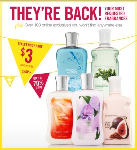 It’s here again, one of my favorite sales of the year. The Bath & Body Works semi-annual sale. Items are available online now and the savings start in store tomorrow. I do gift bags for my models and assistants for my events and they can tell you, I’m always gifting them with Bath & Body Works goodies. So I’m super excited about the $3 deals that are going on now. Check it out: