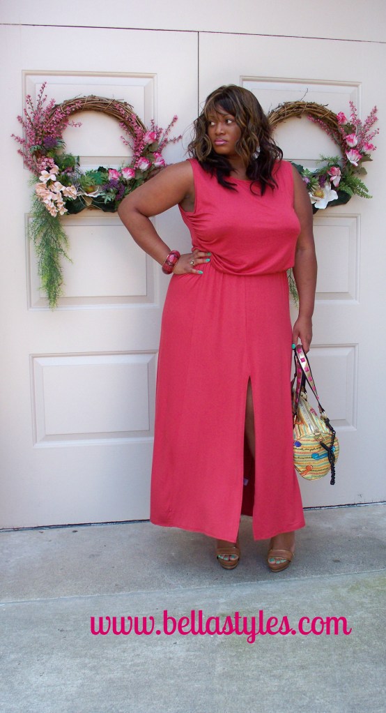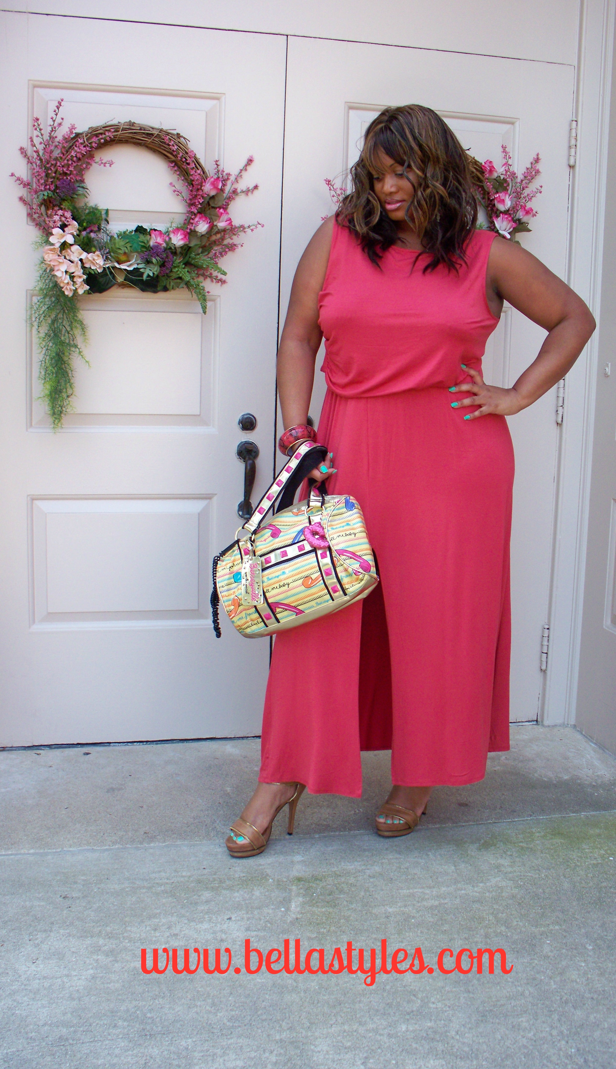 Just as it was predicted earlier in the year, the color coral is a spring must have trend. The dress that I’m wearing today is my second that I have in the coral color. I blogged on my other coral dress here a couple of weeks ago. The maxi that I’m wearing today is the Gibson Bloused Knit Maxi from Nordstrom. In the description it says that it is orange, but like I stated, it is a coral color. The weather here today in VA is set to be in the triple digits so I wanted to wear something that would keep me as cool as possible. I kept it pretty simple with basic tan sandals and my colorful Betsey Johnson phone purse.