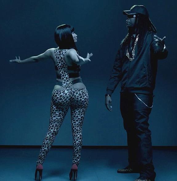 (Above) Nicki Minaj in the jumpsuit in animal print