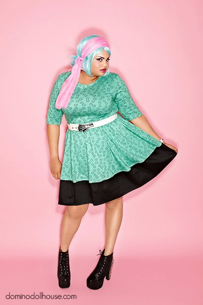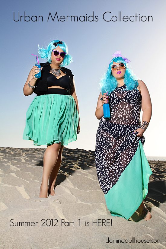 Plagued her entire life by drab clothing choices, owner Tracy Broxterman has always worked towards contributing her energies to adding style and glamour in the plus size fashion world. She started in 2009 with her own personal style blog, Chubble Bubble, and now with this unique online plus size shop, Domino Dollhouse! While the choices for sizes 14 and up are expanding, Domino Dollhouse strives to bring exciting, charming, and fun clothing and accessories to a market thirsty for more. Her new collection entitled, “Urban Mermaids” pops with sheer hues of turquoise, pink and all the beauty of the sea. The campaign photos have curvy models in colorful wigs and eye-catching attire.Β This collection will be coming out in parts! Part 1 is out now, 2 and 3 to follow over the next few weeks! I already know what I want to order, check out my picks below, all priced around $49.99 each: