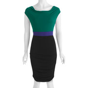 Miss Tina Ruched Colorblock Dress in Garnet, $18.94, Sizes S-XXL