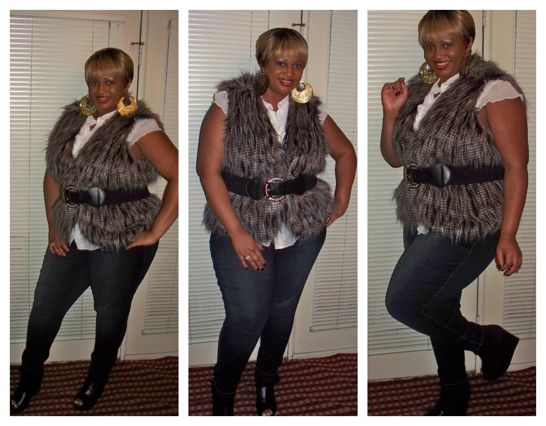 Last Saturday I attended a “Girls Night Out” Birthday party for a friend of a friend. Plus-Size retailer Torrid had sent me their new super-soft Indigo Jeggings ($58.50) and I broke them out for the occasion. I know you have heard me go on and on about my love for Torrid’s new stiletto jeans and these are another similar type ‘second-skin’ denim. It’s a combo of a skinny jean and leggings in one. I like how soft the material is and the long 29′ length can be worn year round. You can wear them with pumps or sandals in the summer months or with knee boots or a cute wedge bootie ($54.50) like I did. I paired the jeggings with a faux-fur vest from a previous Torrid season and added a belt to cinch the waist area. The other curvy ladies at the party really liked this outfit and kept asking for info on where to purchase it so I know for sure Torrid has some new fans, and online orders, just from my Girls Night Out!!!