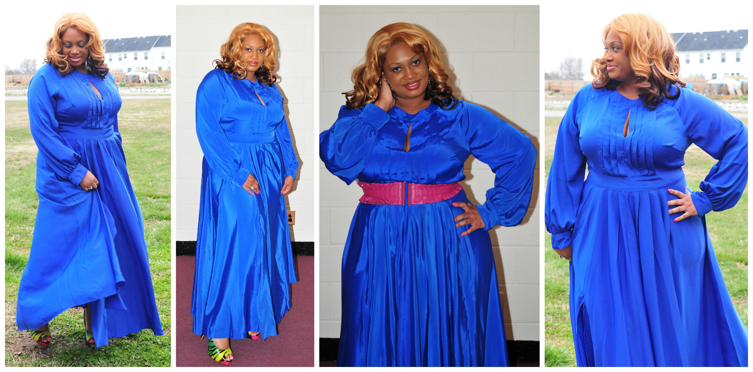 So as I already posted last week, UK retailer Asos had some great new items in the CURVE section. One of them was this Blue Maxi Dress with Bell Sleeves, $110.21. I haven’t placed an express order with Asos in forever but I paid the extra $12 just so that I would have this dress in my wardrobe right away. Well it arrived earlier this week and between my scheduling and the weather I finally got around to taking pics in it today. But to my surprise, when I took the dress out of the package it was very long and looked much like a church choir robe to me. I know that I’m plus-size and all but this dress has a LOT of material in it and was very static clingy. Honestly, I’m not very impressed with it now and Asos is usually always on point with their curvy fashion. The dress looked sooooo good on the model on the website, but then again she was small. (That’s why it pays to show curvy clothing on real curvy women on these clothing sites). It is a gorgeous shade of blue but it was very difficult to take pics in it accenting the double thigh splits due to the extra material. So therefore you can’t even see that detail of the dress in most of my pics. Now I will say that the bell sleeves fit perfect and the gathering under the bust area gave great lift. (And I guess my Butterfly Bra help too). But I wasn’t sure whether or not to add a belt or wear it alone. Being as though I did however throw on a pink belt in a few of the pics, I wore these rainbow animal-print heels by Ironfist that I got from Torrid some years ago.