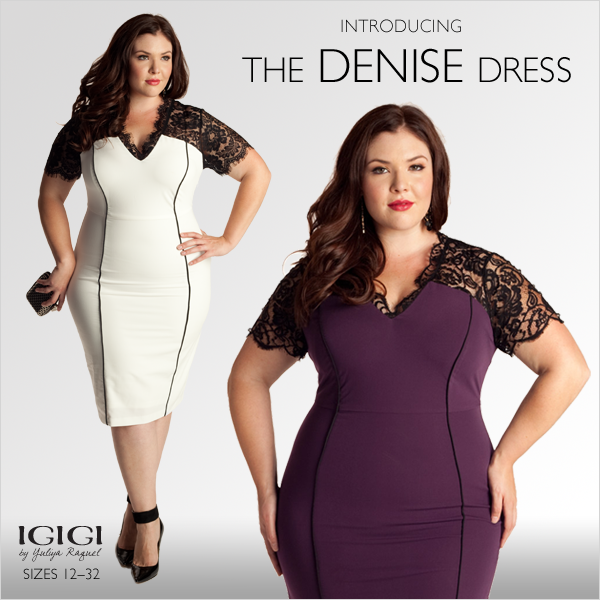 While watching a current episode of “Curvy Girls” I discovered that plus-size model and former face of IGIGI, Denise Bidot, now has designed a dress for the company rightfully called the Denise Dress, $170, Sizes 12-28