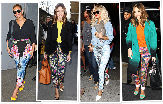 First up was Hannah, my elementary school student, re-creating the Floral Print Jeans Trend as worn by Beyonce and Jessica Alba: