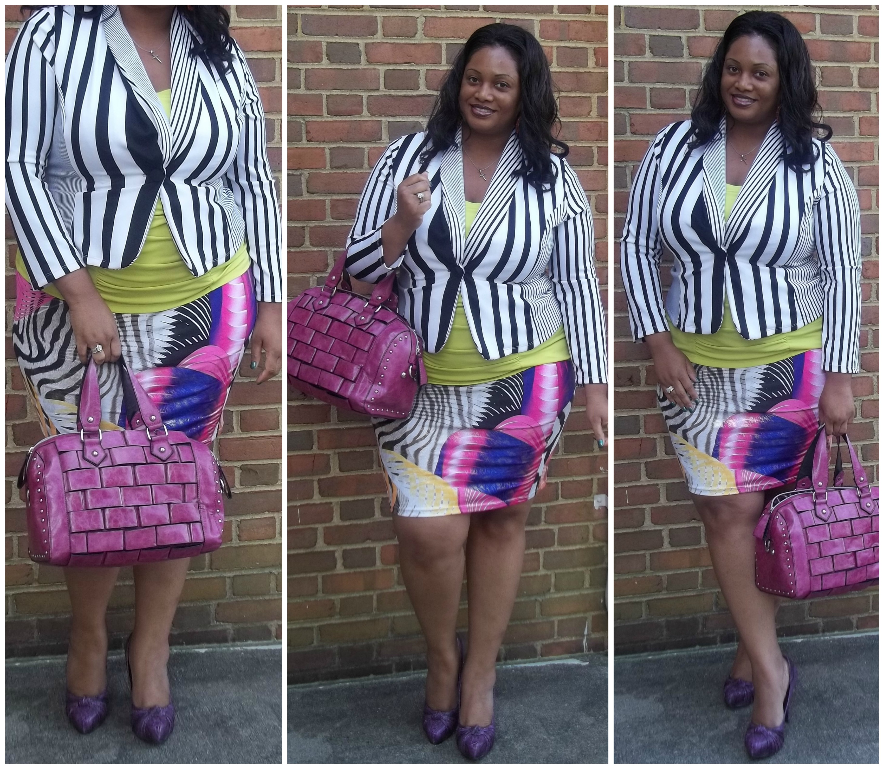 In keeping up with the mixed prints trend, today I wore this black and white striped blazer ($45.99) with the Jewels and Fur Print Pencil Skirt ($29.99) both from Posh Shoppe. Now this had been on my “to wear list” for over a month now but I somehow managed to hide it from myself in my suitcase when packing for a previous trip. I met my Mother for her Birthday breakfast this morning and decided to wear it for that occasion.