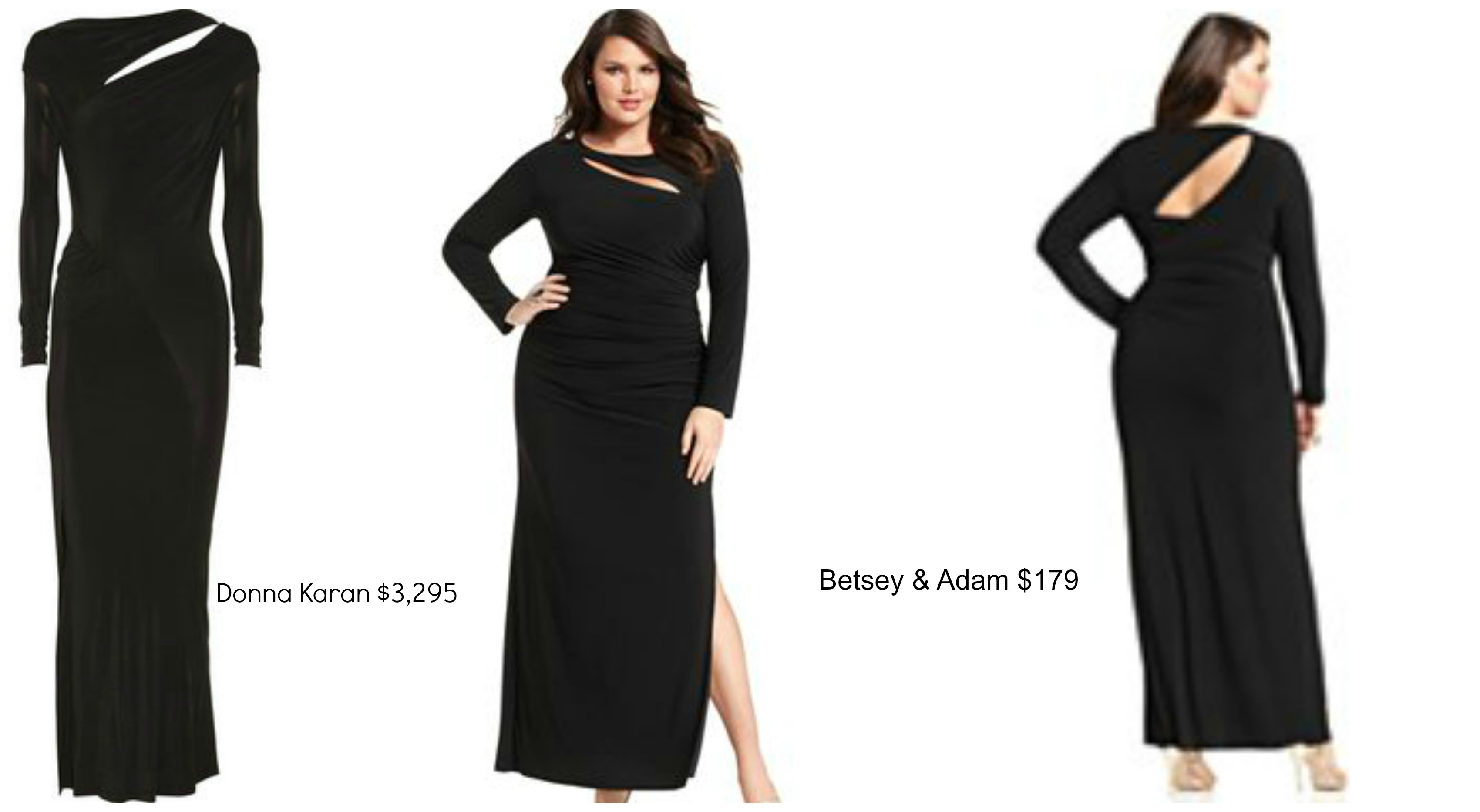 On the “Real Housewives of Atlanta” reunion special earlier this year, cast member Phaedra Parks wore a black $3,295 Donna Karan Asymmetric stretch-jersey gown. She was 8-months pregnant at the time and still looked FABULOUS. I located a similar version for the plus-size ladies and it is called the Betsy & Adam Long-Sleeve Ruched Cutout Gown from Macy’s. (Another similar version is also available at Nordstrom). The Betsey & Adam gown only runs $179 which is a tremendous savings compared to the Donna Karan style. I’m almost ashamed to admit this but I have this dress at home and had forgotten that I had purchased it last year until I saw it featured this week on the Wendy Williams Show. Stylist Lilliana Vazquez featured it on a model who was a breast cancer survivor as part of her new transformation. I’m so glad that I caught this episode because now I’ll make it a point to wear this dress soon especially with the holidays very near.