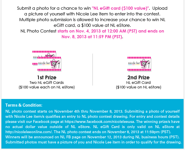 One of my favorite handbag designers, Nicole Lee, is having a photo contest for 5 days only. That’s right from today until November 8th, if you own any Nicole Lee handbags, submit your pics for a chance at winning a $100 gift card. I often am seen wearing Nicole Lee handbags in my blog posts and I’m even featuring Nicole Lee as my main handbag choice for the Just My Size Fashion Fridays Project that I’m working on. My friend alerted me to the email blast that was sent out today and when I just checked mine I saw that my pics were indeed included on the flyer for the contest. I’ve been tagging Nicole Lee in my pics on Facebook for a while and I’m glad that they were paying attention. I mostly go for the boston bag style in their handbags but all of them are very unique and statement pieces. So snap your pics, submit and good luck ladies!