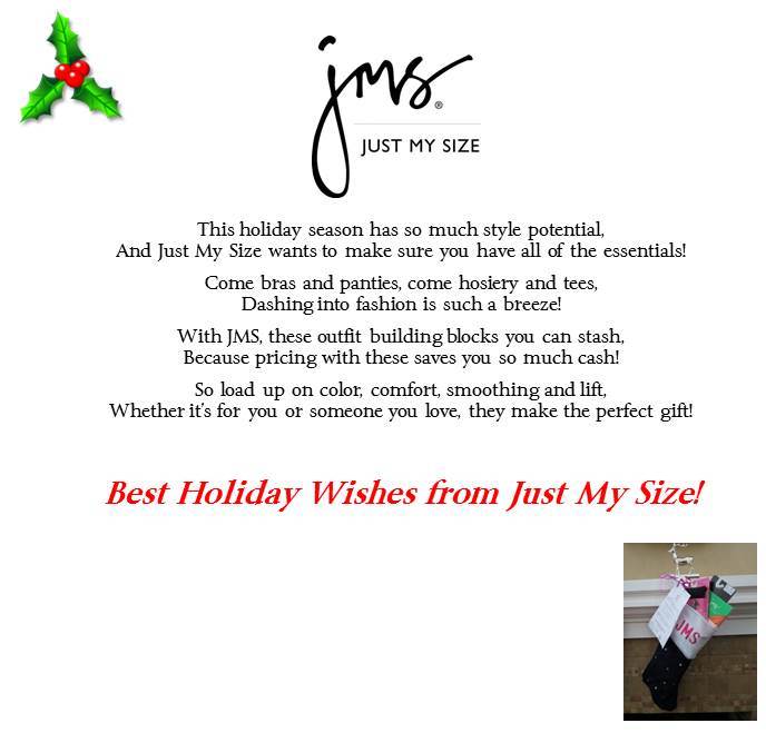 Thank you all for following my style journey with JMS and Happy Holidays to you and your fam. To celebrate in style, myself and JMS are offering a JMS Holiday Essentials Giveaway to three of my lucky readers. That’s right I will randomly select 3 of my loyal readers with a chance to receive a holiday stocking from Just My Size filled with goodies. (I received mine earlier this week and it is loaded with tees, hosiery and more). All you have to do is share this post on Facebook or Twitter with the hashtag #JMSBellaHolidayGiveaway