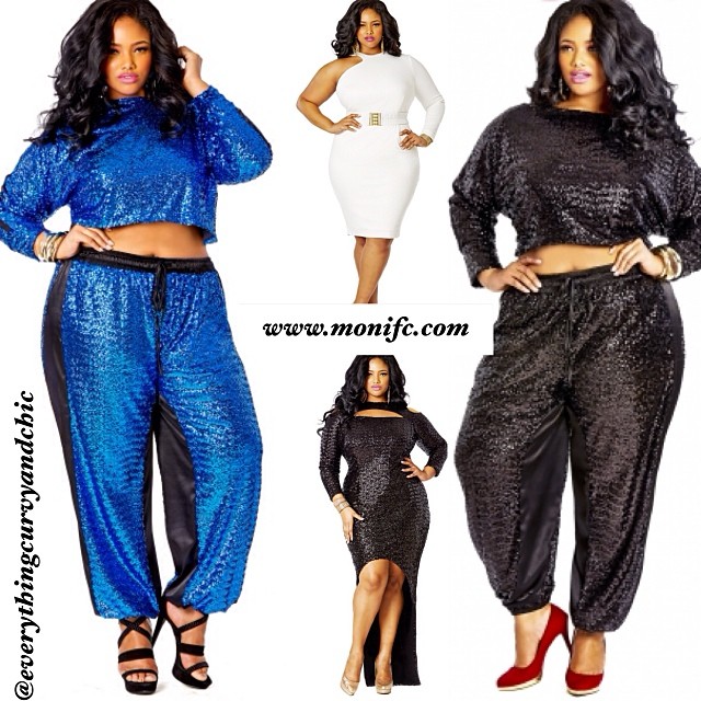 I just happened to sign-on to Facebook and thanks to curvy blogger extraordinaire, Marie Denee, I got the heads up on a new Holiday collection from designer Monif C. In the latest and greatest line, Monif C. has revamped her stellar “Dana” Dress ($288) with sequins and even added the on-trend item of Jogger Pants ($198) also dripped in sequin. (All in sizes 1X-3X). Monif has convinced me that there is NO reason a curvy diva should still be saying “I don’t have anything to wear for New Years Eve”.