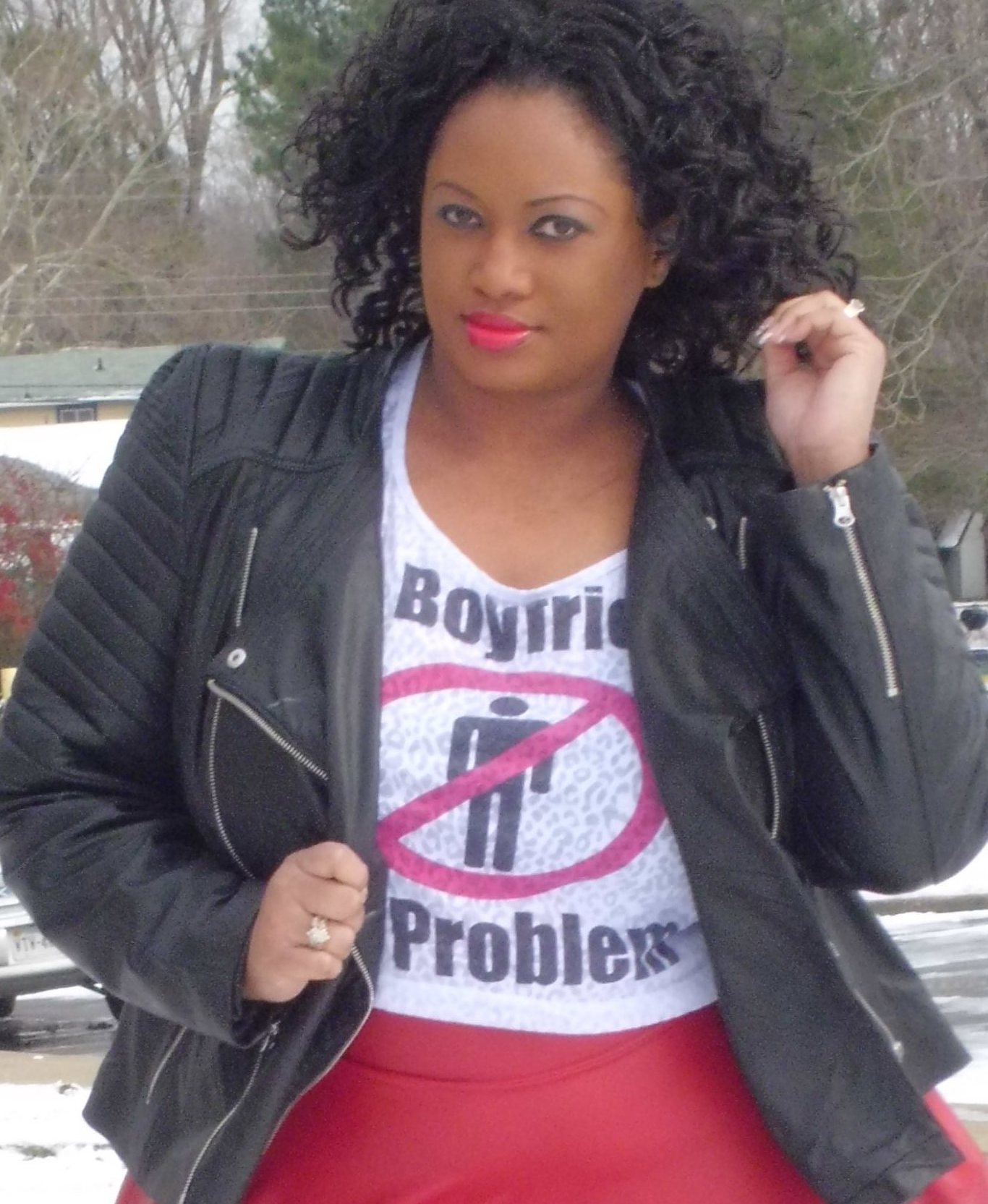 I know that I’ve done a few Valentine’s themed post here lately but today is for the single ladies. Not every one is gonna be ‘boo’d’ up this year. So in honor of my single and lovin’ it ladies this one’s for you. I’m rocking a crop-top with the words, “No Boyfriend, No Problem” across the front. I got it a few summers ago and since I was stuck in the house having cabin fever today, I decided to get dressed up and go outside in the snow to take pics. Don’t Judge Me.