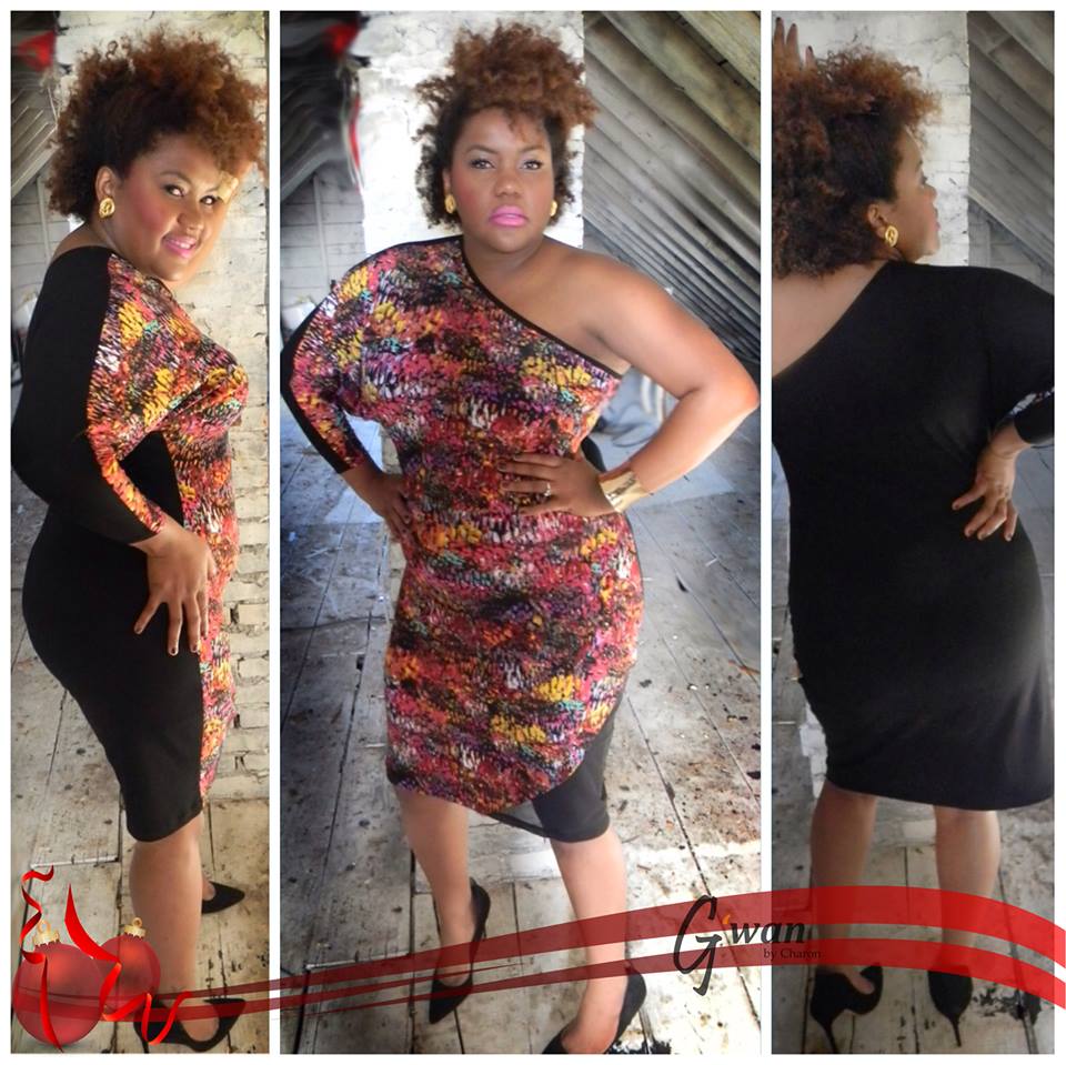 Whoever said that dressing up isn’t a picker-upper lied. I must be honest, I was in a shitty mood earlier, pardon my french, but once I got all dressed up and put on this “freakum dress”, it was all good. This is another creation by designer G’wan by Charon that I previously introduced you all to HERE. The dress that I’m wearing today is called the Scarlett Python Prism Print Dress ($85, Sizes S-3X). It’s a one-sleeved bodycon with a sheer mesh on the left bottom side. Can I just say I felt ultra sexy in this number. No plus-size woman should EVER say that there aren’t enough clothing options for them.