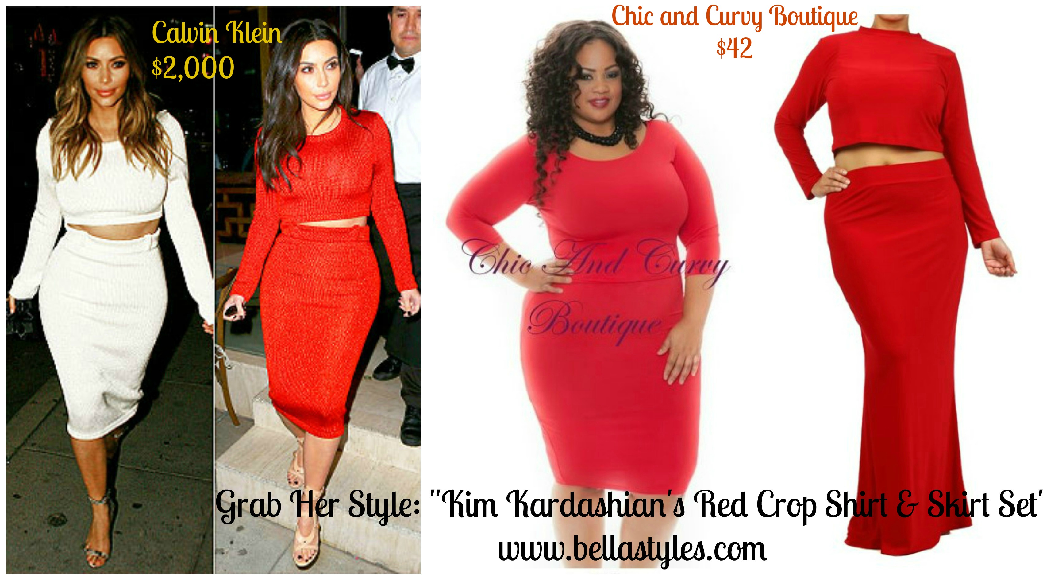 Just scrolling through the internet I came across a pic of Kim Kardashian wearing a red two-piece crop top and skirt set. While I was writing my post earlier on Chic and Curvy Boutique’s sale, I saw a similar set on their site. Actually two, one is a knee length version and the other is a longer skirt style. Both sets are only $42 each and compared to the $2,000 that Kim K. shelled out, you can grab both sets, in all colors, and still have a huge savings. Plus if you use the special discount code below you’ll get an extra 25% off. Happy shopping ladies!