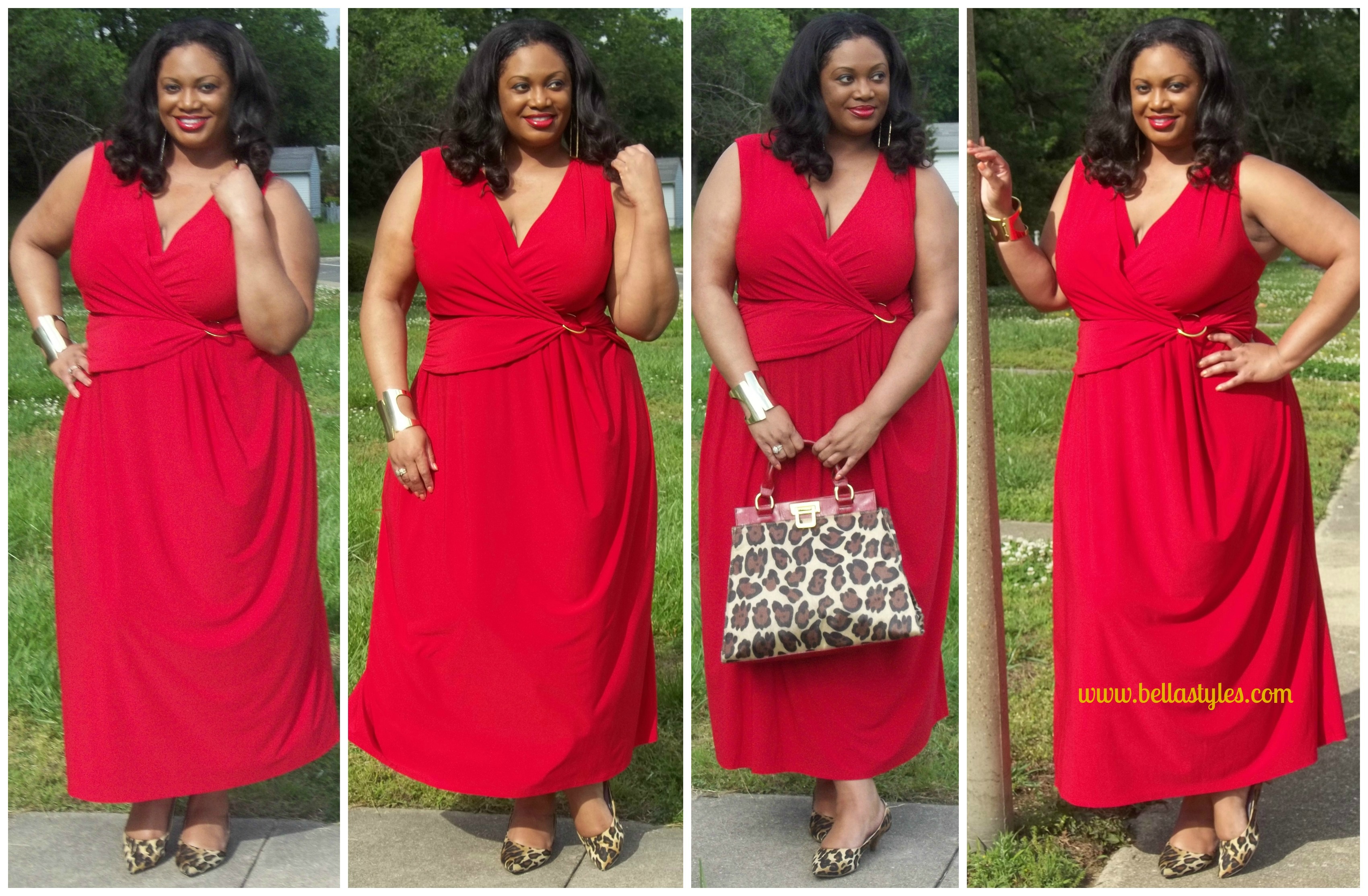 In still celebrating my 4-year Blogiversary, I have yet another giveaway to share with my readers. I teamed up once again with Midnight Velvet to offer one person a $50 gift certificate giveaway. That’s right, just be sure that you’re following Midnight Velvet on Facebook, Twitter or Pinterest and tweet the phrase (or comment below), “I just entered the @bellastyles and @ShopMV blogiversary giveaway for my chance to win a $5o gift card”. (Be sure to add in the hashtag #MVFabBloggers if possible). The winner can then put the $50 towards a purchase some of the wonderful items that are on the Midnight Velvet website such as beauty items, home decor or this fabulous dress that I’m wearing above. I’m in the Gold Ring Dress which is available in both misses and plus-sizes. This red stunner is full length with a crossover top portion that connects at the left waist area with a gold circle ring accent. I paired mine with animal-print accessories to compliment the gold ringlet. It was an exceptional choice for a Sunday evening play that I attended in it last night. Just add maybe a gold bangle and earrings and you’re all set for an easy, breezy comfortable outfit to wear.