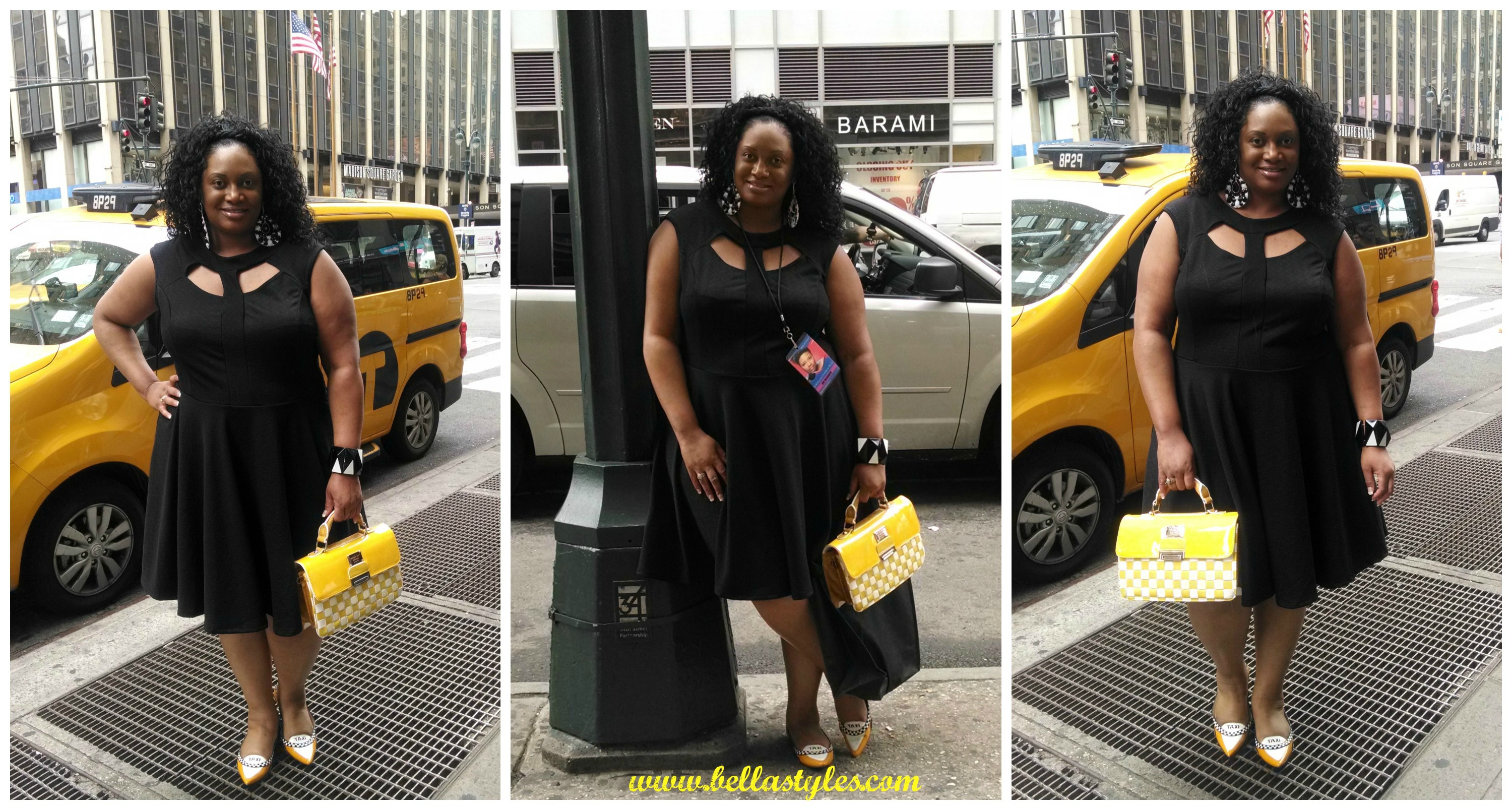 Yesterday afternoon I got a chance to check out one of the panel discussions during Full Figured Fashion Week® (FFFWeek). It was the True Model Management presents “Welcome to The Great Debate: The Future Of The Plus Industry”. Panelist discussed topics such as the role of bloggers in the plus-size fashion world and the use of the word “plus”. For the event I wore this Textured Jacquard Peekaboo Skater Dress ($49.50) by Ashley Stewart. The dress has a unique cutout design in the front neckline so adding a necklace would be useless. I instead went for statement accessories by wearing these Kate Spade Taxi Flats ($278) and Nicole Lee Checkered Briefcase ($74) both worn before HERE. The weather in NYC was perfect yesterday and this dress was a great comfy pick to walk about and see the town.