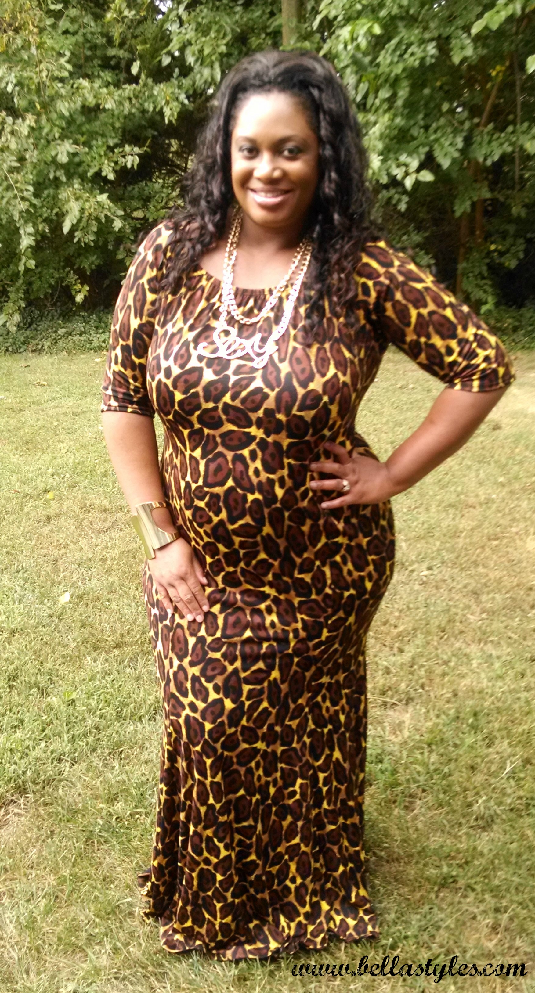 So New York Fashion Week started up on Thursday and with that for me comes inspiration for the upcoming Fall fashion season. Now although the collections being shown on the runway are for Spring/Summer 2015, I’m ready for some cool weather and cute fashions for the Fall. First up on my must have list is this animal print mermaid dress by Ashley Stewart ($49.50). This dress recently hit their site and is a web exclusive. Exclusive is just the word for it too. The fit is curve friendly and makes it one sexy number. That is why I added the sexy swag chain belt ($16.50) with it. But instead of wearing it around the waist, I styled it a little differently and wore it as a necklace. The dress is a statement piece all on its own so I would just wear a plain pair of black pumps with it as to not over do it. The mermaid dress would be a classy number to wear to one of the fashion week shows or for going out for cocktails to enjoy some great wine with friends!