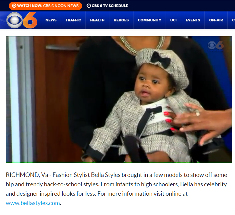 As I previously posted on last week, I recently did another segment for CBS “Virginia This Morning” which aired today. It was a Back to School themed segment and I styled an infant, a toddler and two teens in the upcoming Fall season’s top trends and celeb inspired fashions.