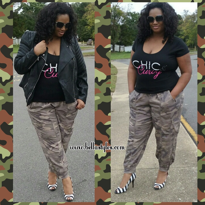 I went into my local Lane Bryant recently and fell in love with these camo joggers that were on the sale rack. I have been wanting to try the jogger trend for a while and the camo print was an added incentive. I paired up the joggers with a Chic and Curvy Boutique Tee ($32) and an Asos Leather Moto Jacket. To round out my look I added pair of striped pumps from Payless.