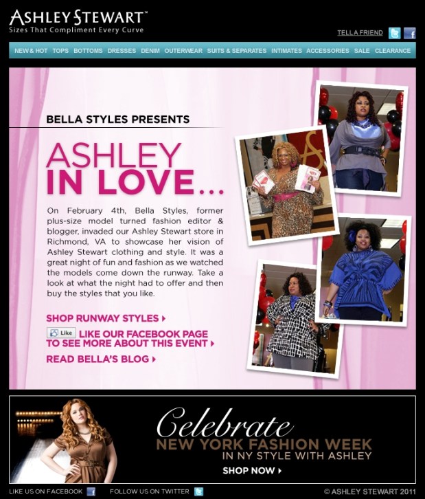 September 23, 2011- Went to New York City on behalf of Ashley Stewart to attend the Holiday 2011 photoshoot with top plus-size models Marquita Pring and Tara Lynn. I also got the opportunity to style 3 new looks from the collection that were featured on the Ashley Stewart website and mail-outs. Read more at www.ashleystewart.com