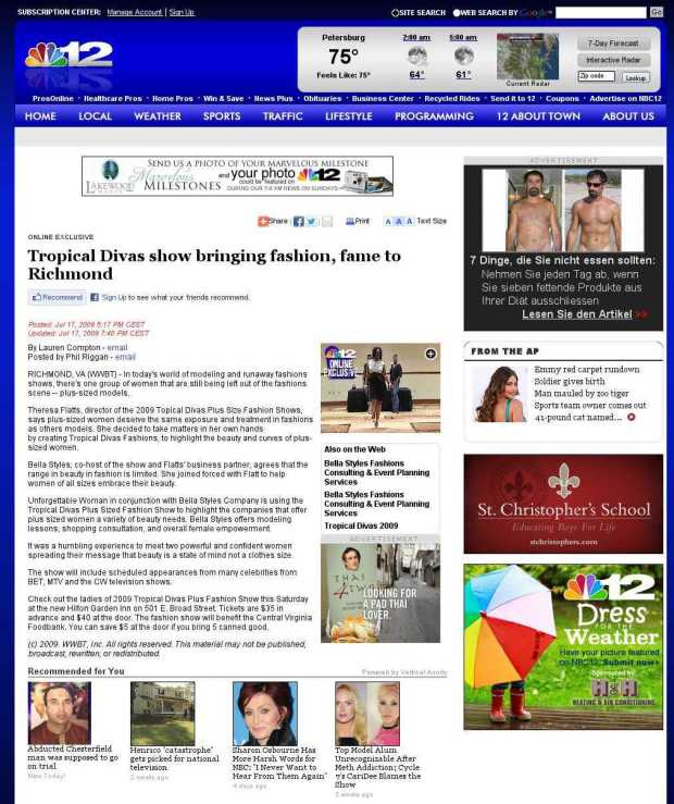 July 2009-Interviewed by NBC’s Channel 12 in Richmond, Virginia on the topic of co-producing “The Tropical Divas Fashion Show”